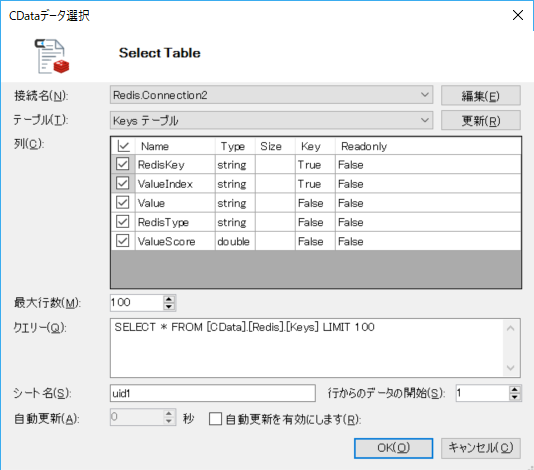 Cdata Redis Driverのテーブルの扱い