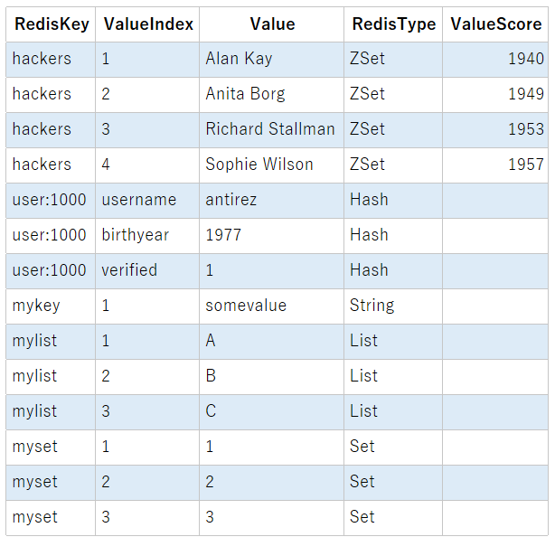 それもそのはず。Cdata Driverでは、Redisの文字列型以外の各型は、すべてSetだろうがhashだろうが1行1行に分解して、ロードする仕組みになっています。