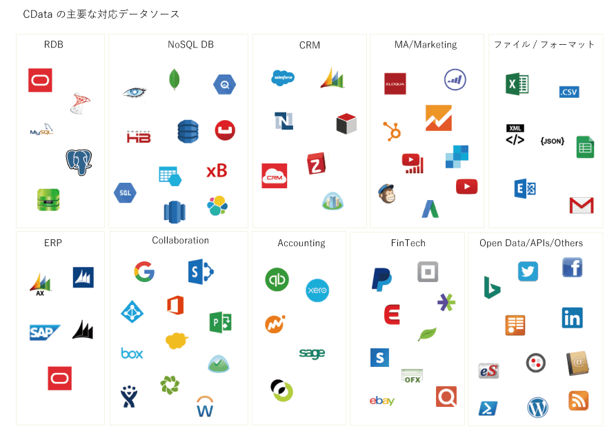 AWS Lambdaで実現するデータ連携FaaS(Function As A Service)の実現手順でした。本記事では、Twitterからkintoneへの連携でしたが、Saas連携のところで利用しているCData JDBC Driverは約90を超える様々なデータソースへJDBCなどの規格のもとSQLでアクセスできますので、本方式でサーバーレスアーキテクチャで様々なSaas間連携ができるようになります。