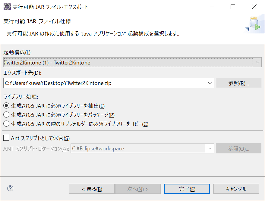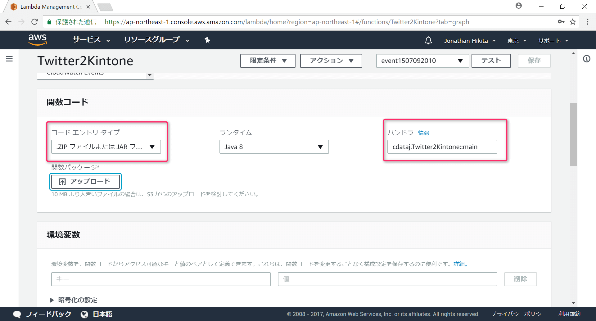 ※ハンドラ名は、Javaコードのパッケージ名.クラス名.(例:cdataj.Twitter2Kintone::main)を指定