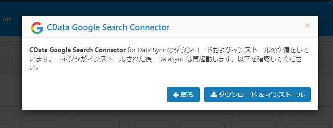 「ダウンロード&インストール」をクリックし、CDataSyncを再起動すれば