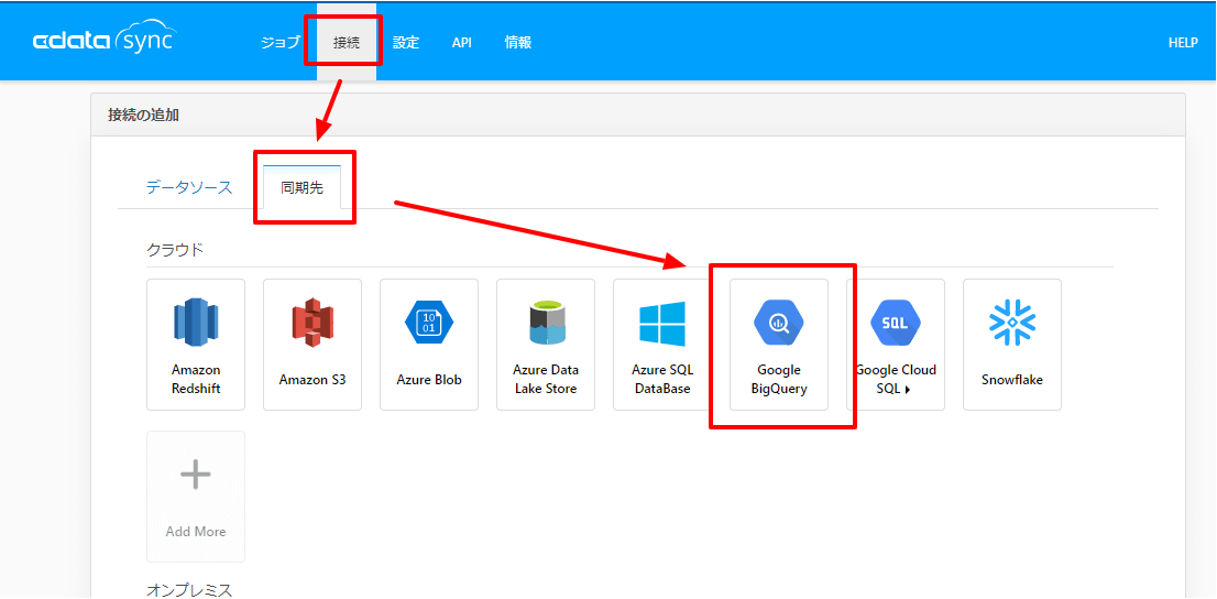 「接続」→「同期先」から「Google BigQuery」を選択し