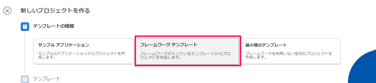 まずはテンプレートの種類は、フレームワークテンプレートを選択します。