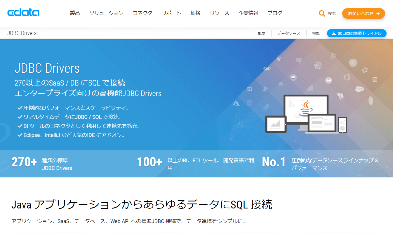 CData では現在 270 近くのサービス向けの JDBC Driver を提供しています。