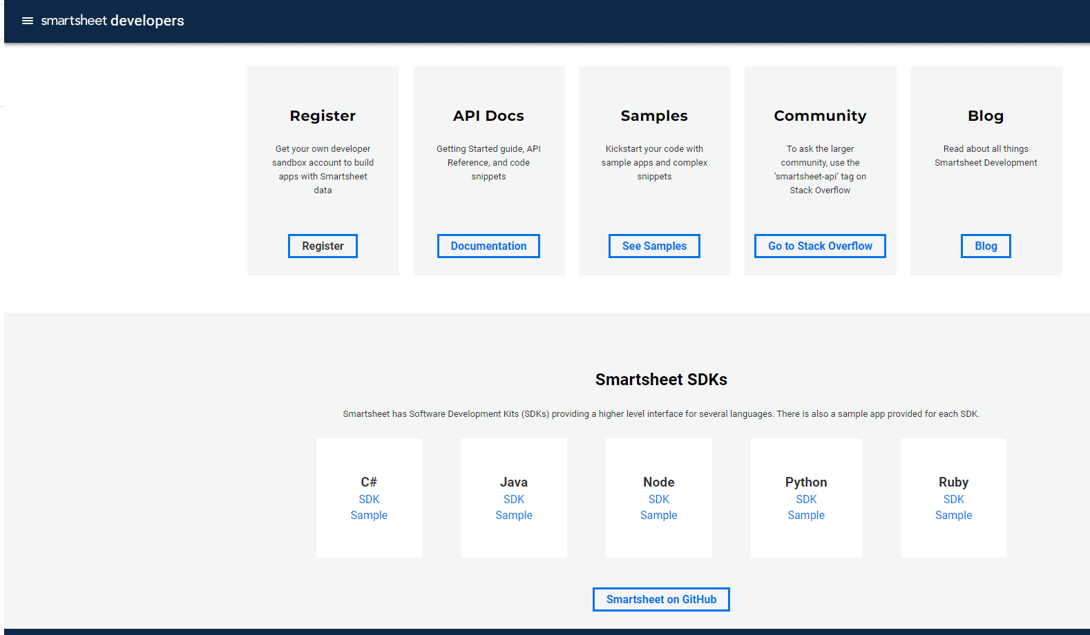 それでは、Smartsheet のAPI ドキュメントから見ていきます。
