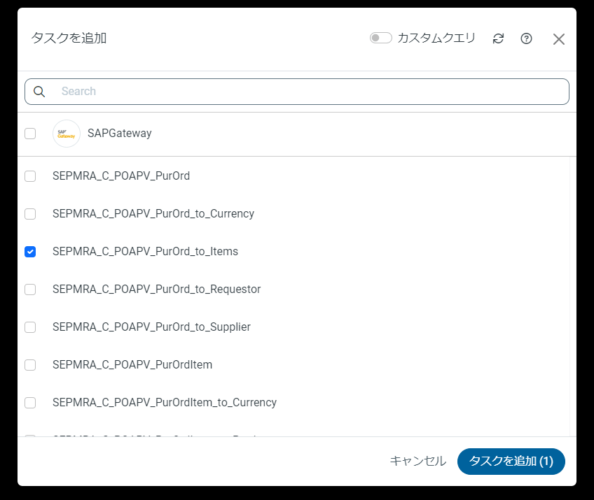 タスクを追加から、任意のテーブルを選択し