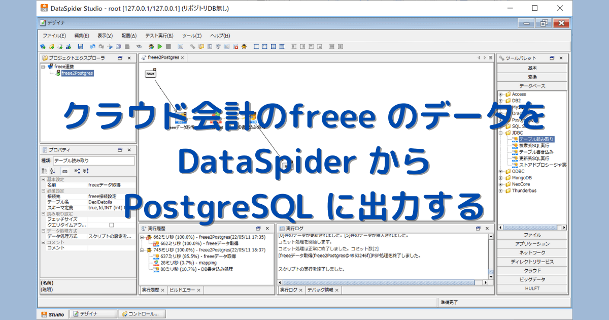 freee データをDataSpider から取得し、PostgreSQL へ出力する方法をご紹介しました。