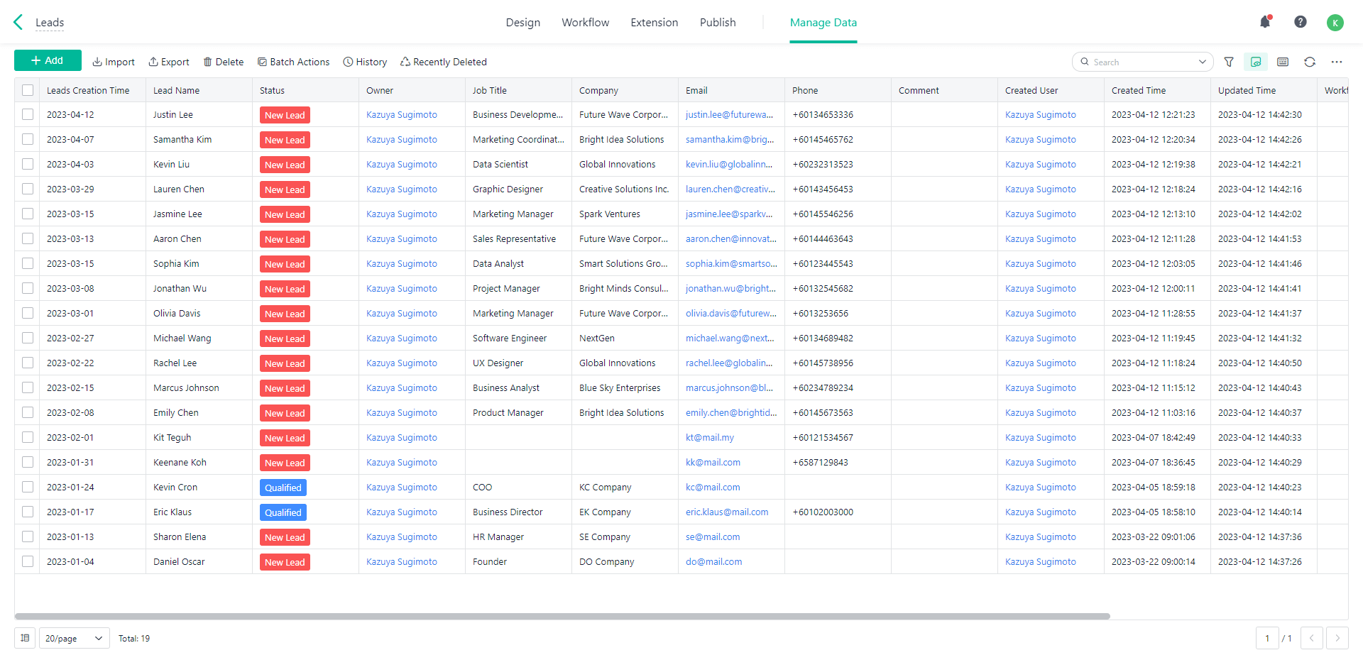 You can easily develop applications such as CRM, SFA, HR, etc, like below with no-code.