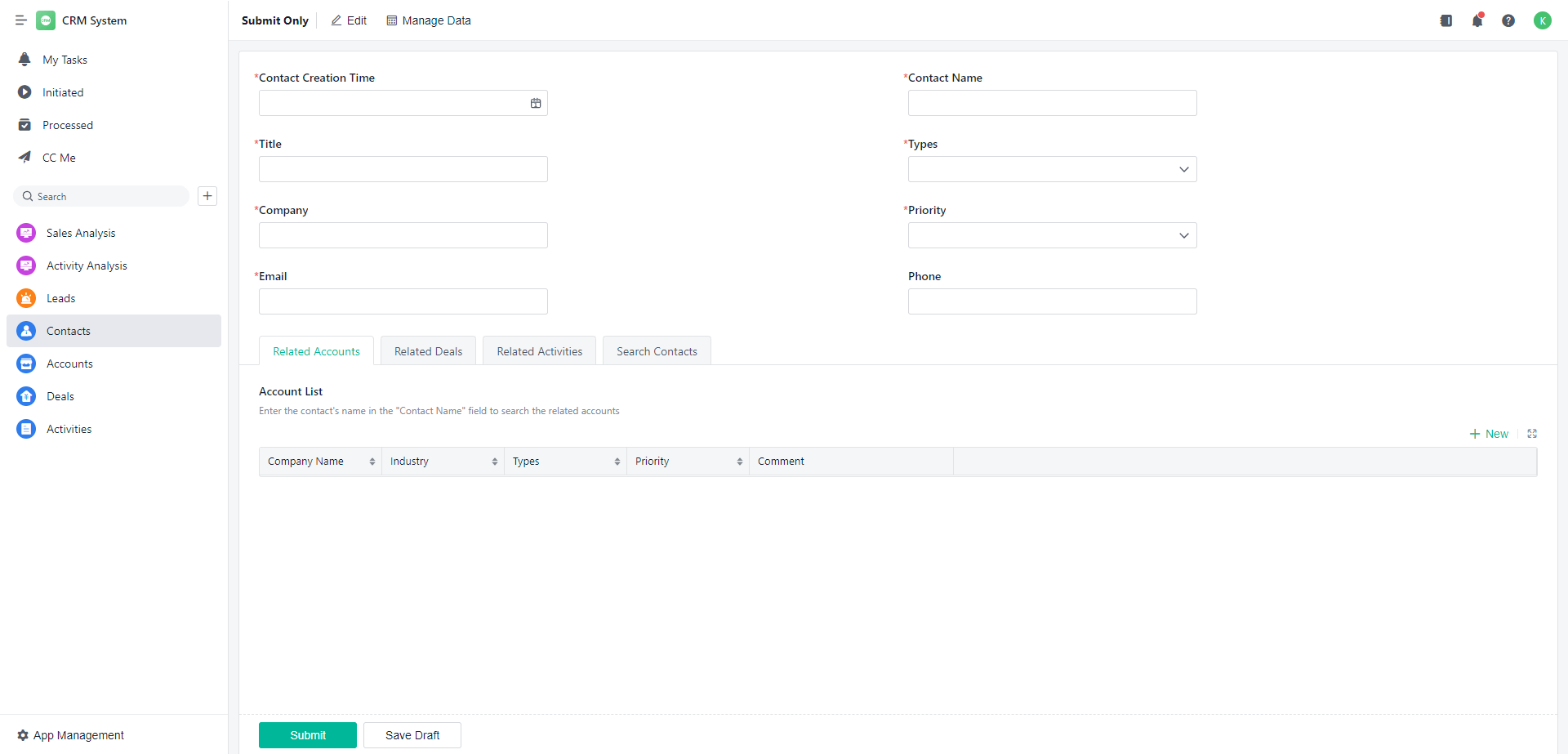 Click "New App" to "CRM System",