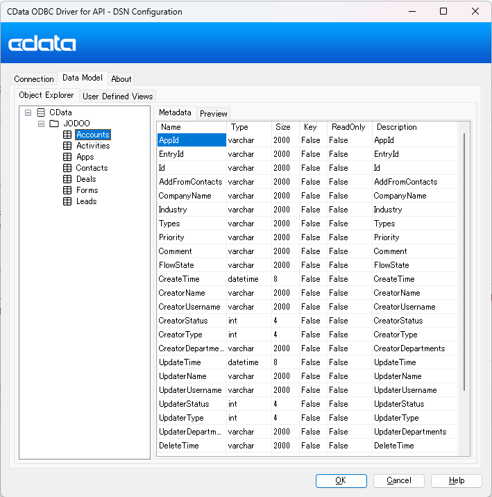 After the connection is completed, you can confirm the available app/form data models from the "Data Model" tab.