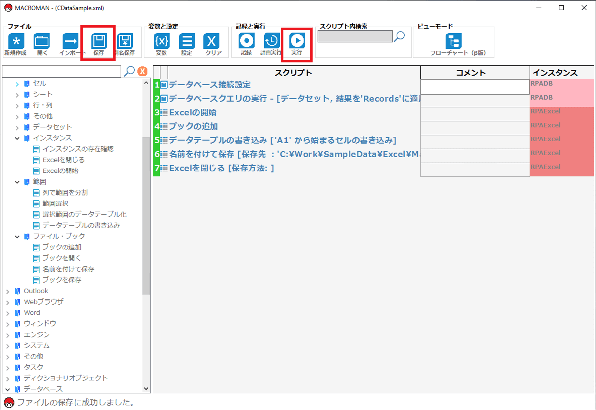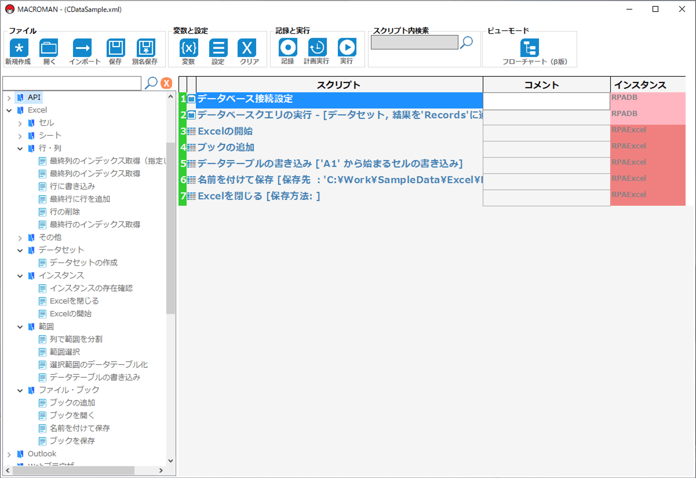 あとは取得した結果をマクロマンの機能を使って、処理していきます。