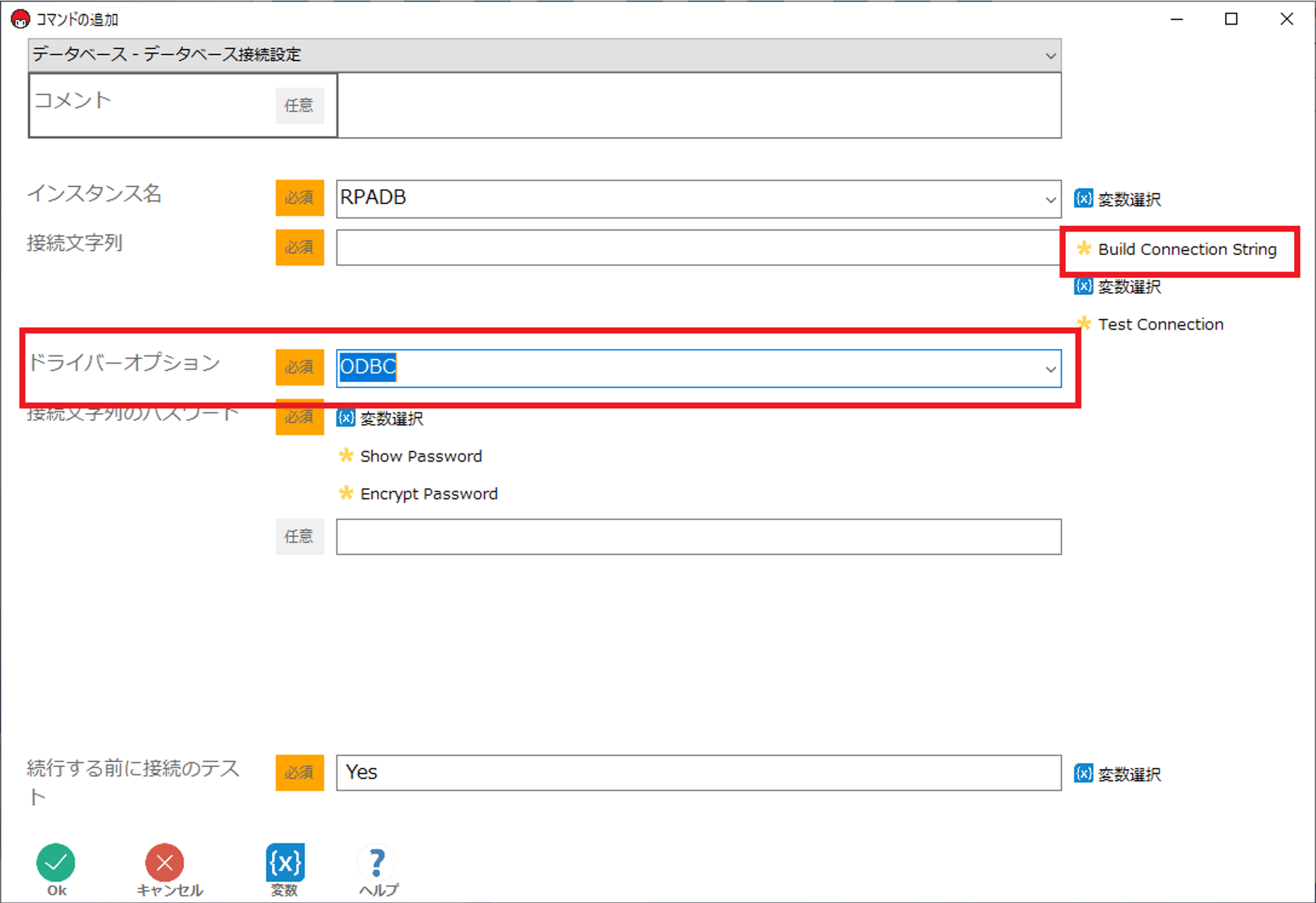あとは「ドライバーオプション」から「ODBC」を選択すればOKです。これでODBC Driver へのコネクションが確立されます。