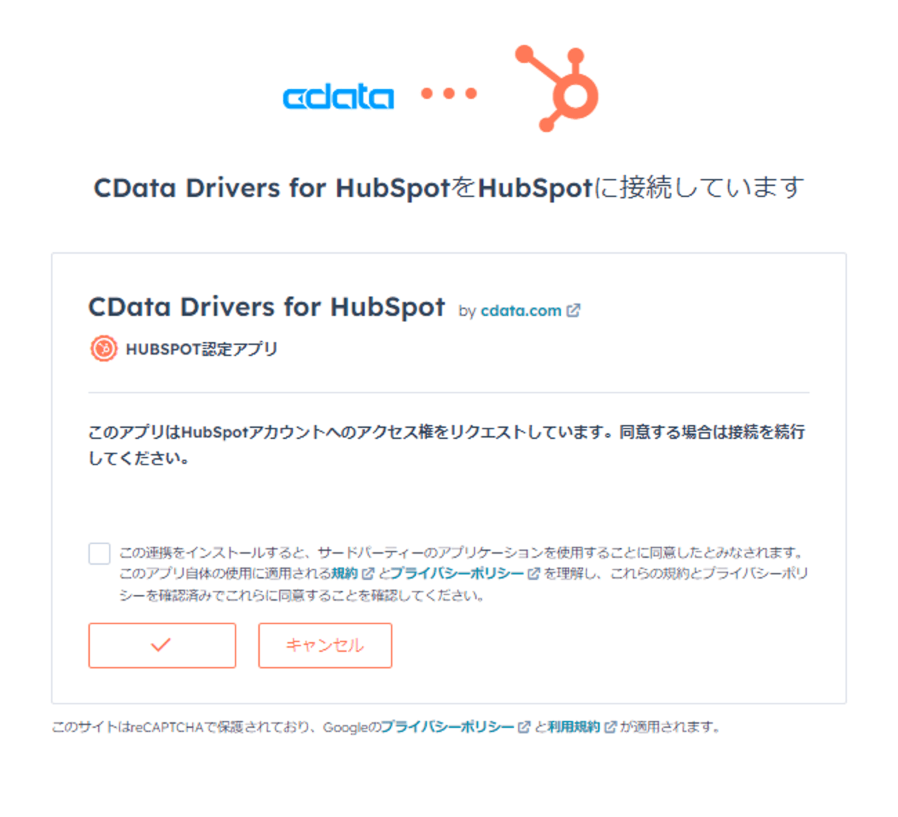 CData Drivers for HubSpot へのアクセス権を承諾します。