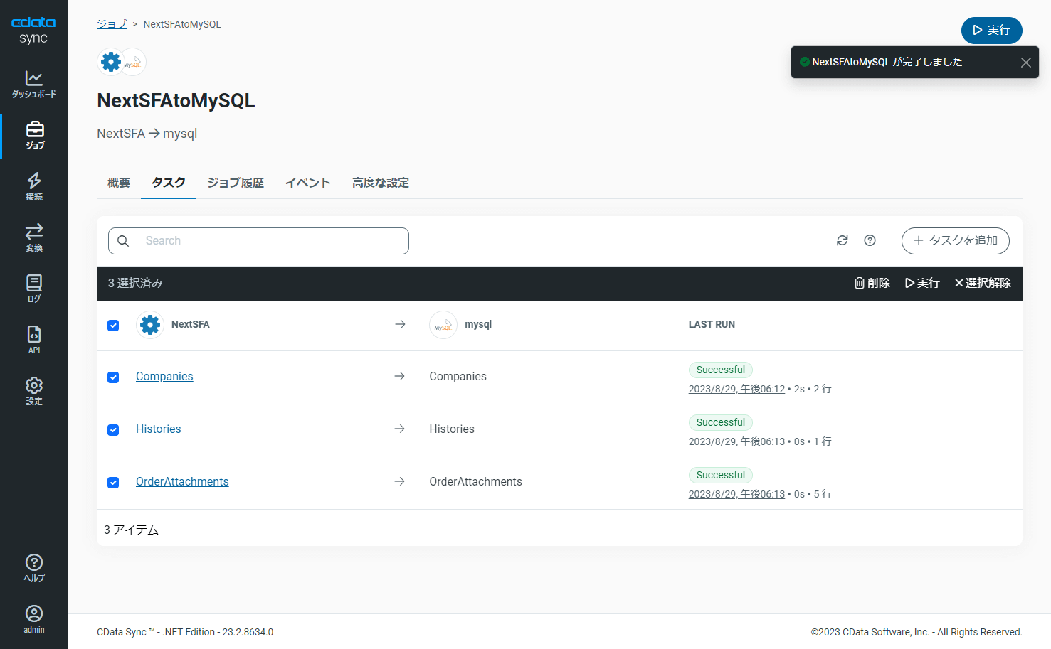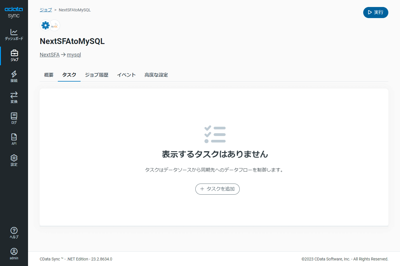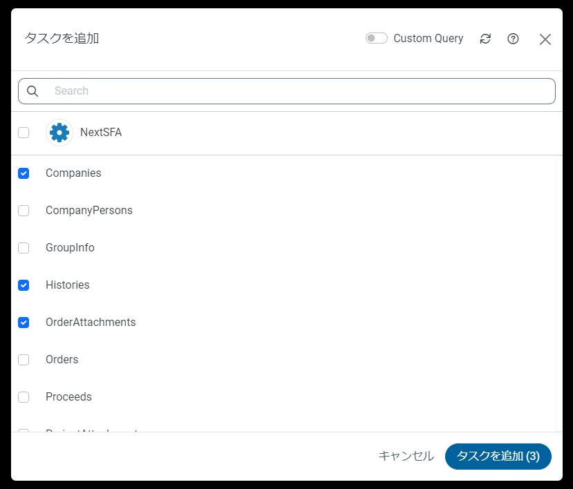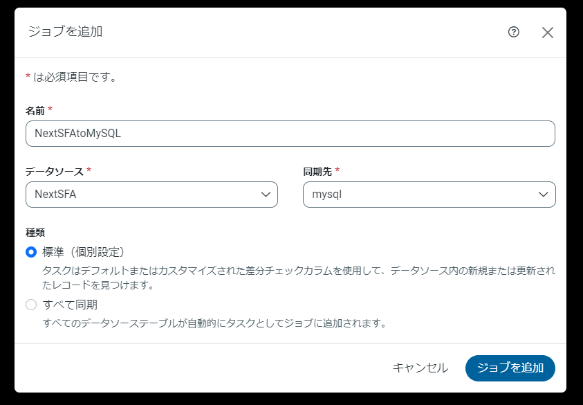 ジョブを作成した後は、ネクストSFA の同期対象となる任意のテーブルとしてタスクを追加しましょう。