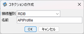 「接続種別」として「RDB」を選択、「名前」に分かりやすい名前を設定し「OK」をクリックします。