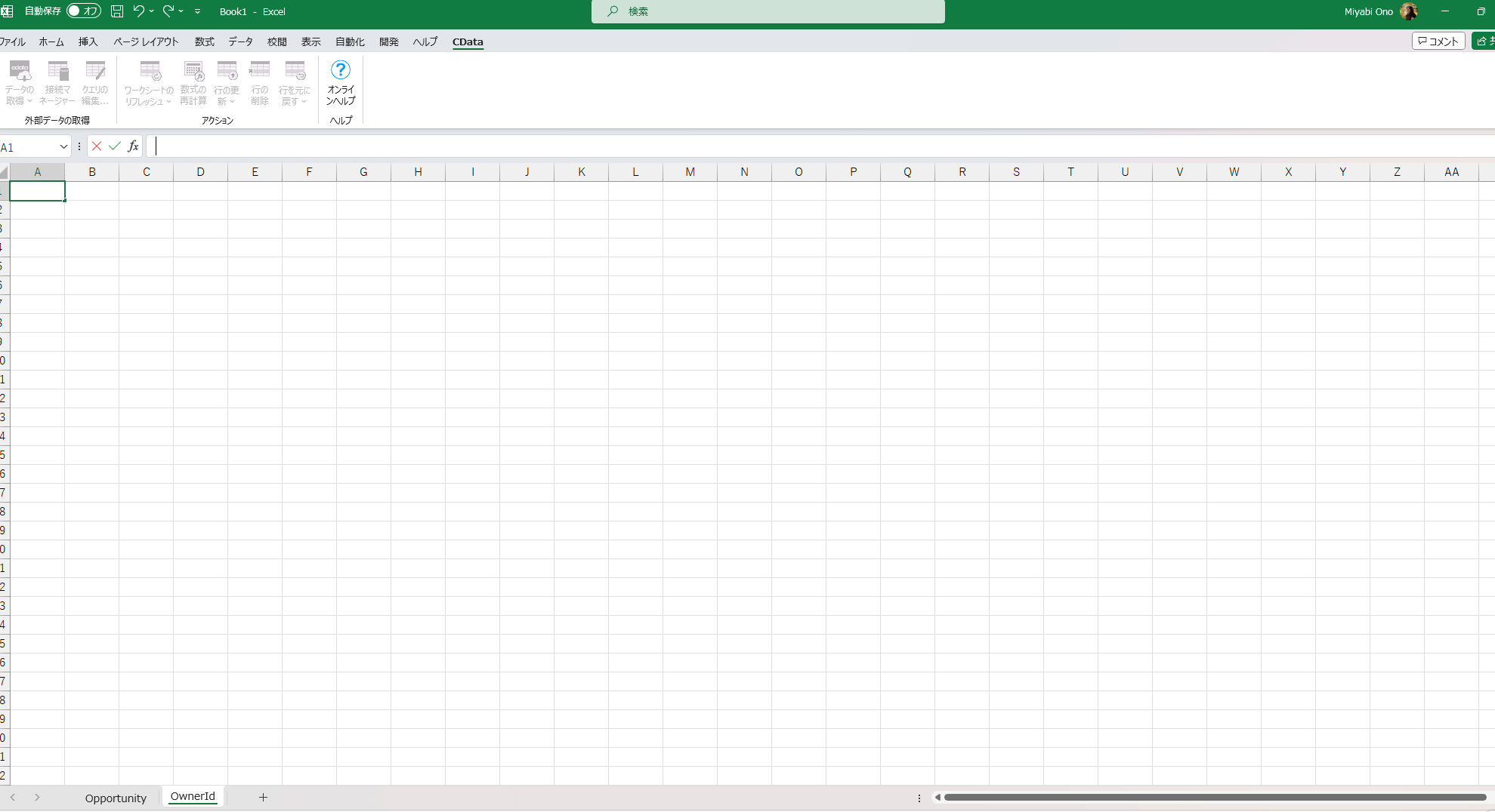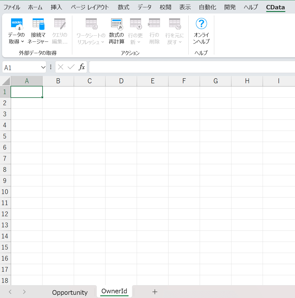 OwnerId シートのA1に、担当者のユーザーID/OwnerId を入力してみます。