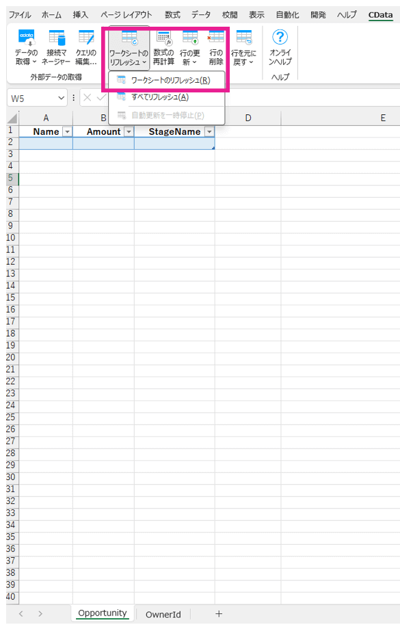 Opportunity のシートに戻って、ワークシートをリフレッシュしてみます。