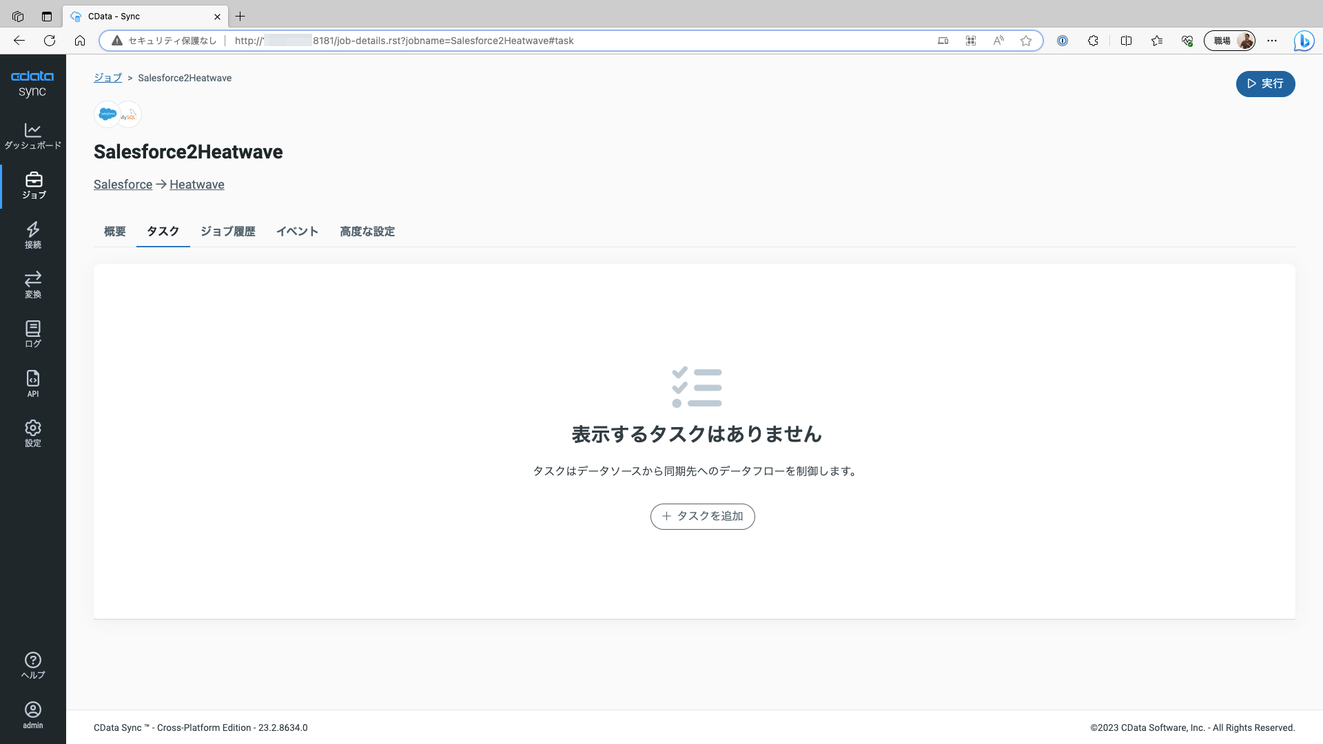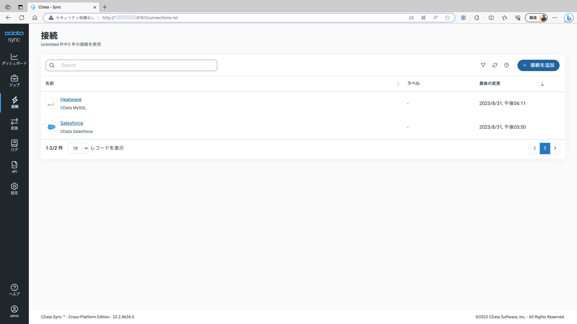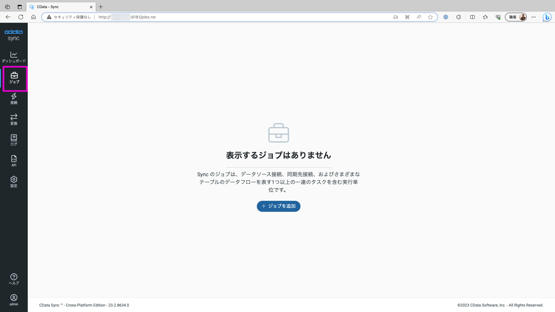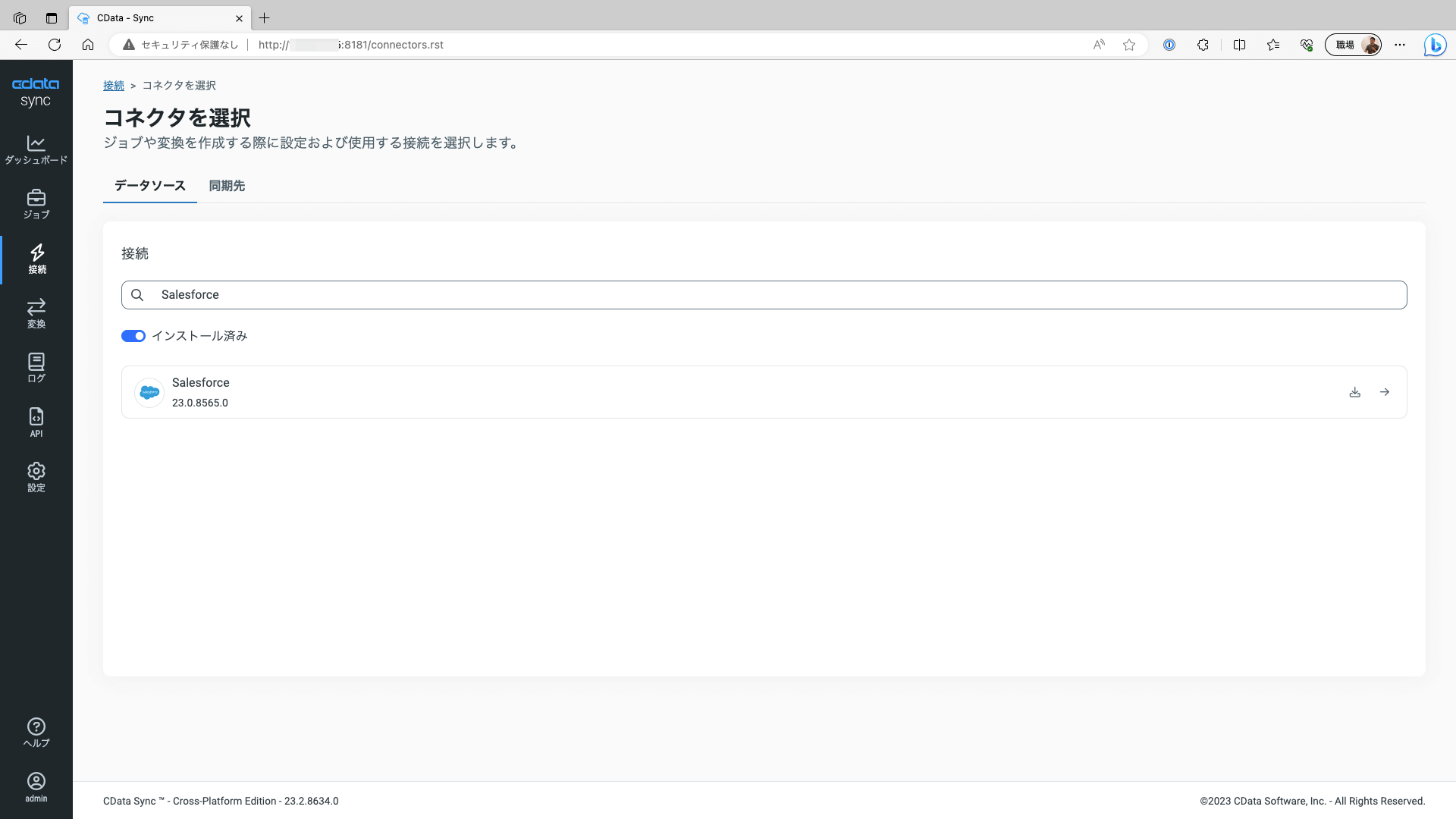 OCIインスタンスのPublicアドレスにアクセス可能なマシンのブラウザからCData Syncの管理コンソールにアクセスします。