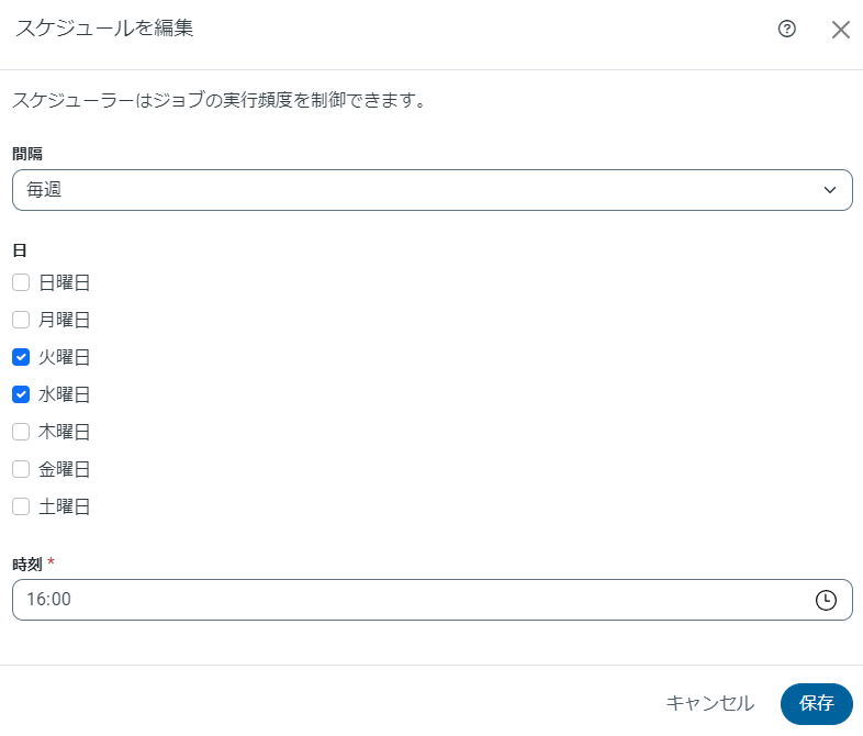 ※毎週火曜日・水曜日の16時にスケジュールを設定しました。