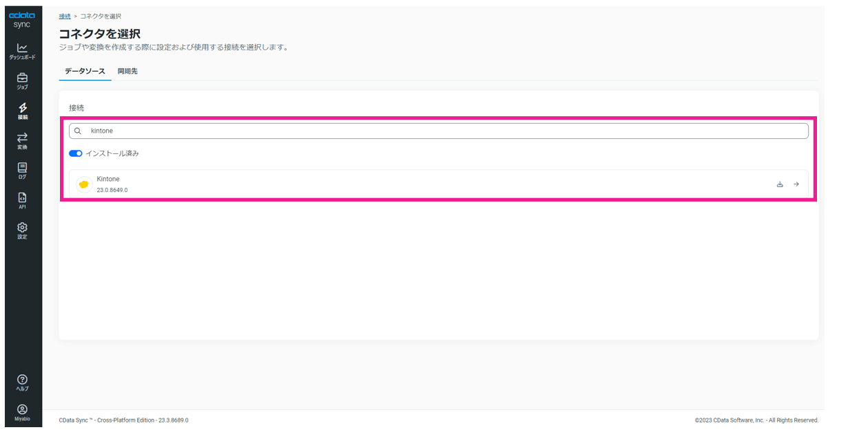 今までは、CData Sync の接続画面からkintone コネクタをダウンロードしてから、接続設定していましたが、今回リリースされたCData Sync では、ダウンロードの手間を省き、そのまま接続設定ができるようになりました✨Kintone コネクタがプリセットされたことによって、よりシンプルな接続設定ができるようになっています。