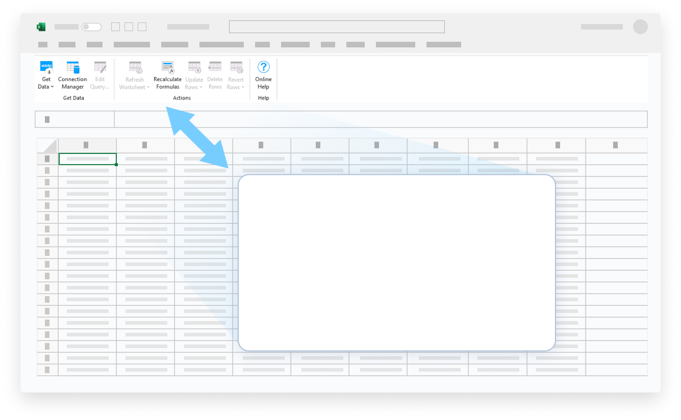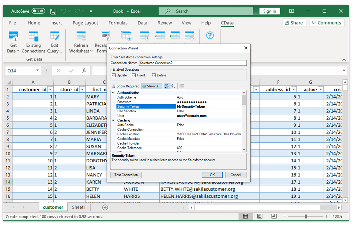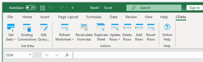 eBay Analytics Excel コネクタは Excel のツールバーとリボンに完全に統合されており、ワンクリックでライブデータに直接アクセスできます。eBay Analytics Excel アドインをインストールすると、Excel に新しい CData データアクセスツールバーが作成され、ユーザーはリモートデータに接続するためにアクセスできます。Excel ツールバーから、インストールされている CData アドインを選択して、任意のデータソースへの接続を設定できます。eBay Analytics Excel 統合が設定されたら、eBay Analytics からテーブルを選択するだけで、Excel アドインがライブデータで新しい Excel シートを作成します。