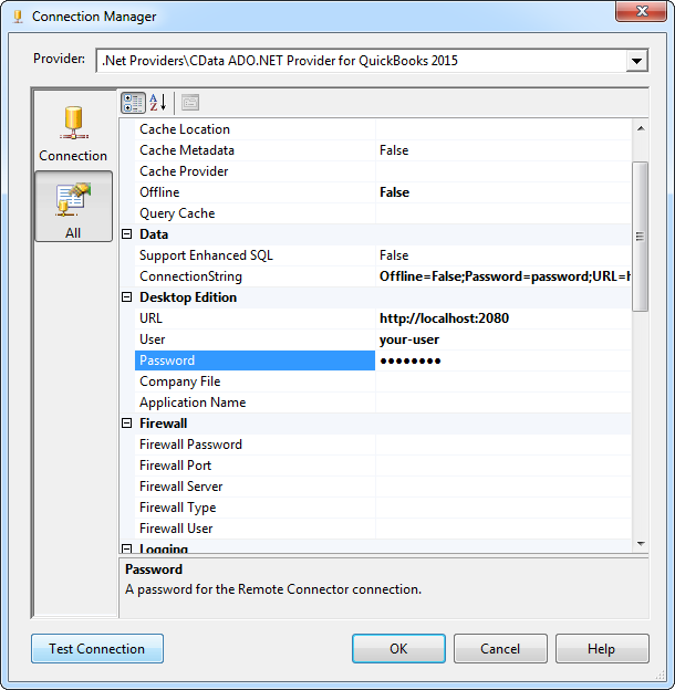 SQL Server SSIS で QuickBooks Data Provider を使い始めるには、完全に動作するサンプルプロジェクトをダウンロードしてください。