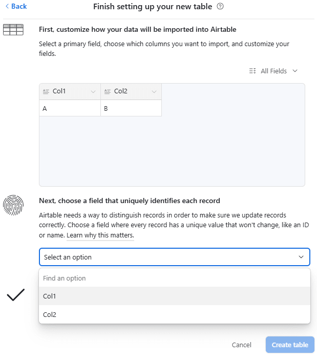 Airtable で CSV コンテンツのアップロードを確認