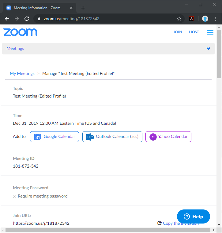 ('Test Meeting (Edited Profile)',2,'2019-12-31T00:00:00',60,'EST','user@domain.com')