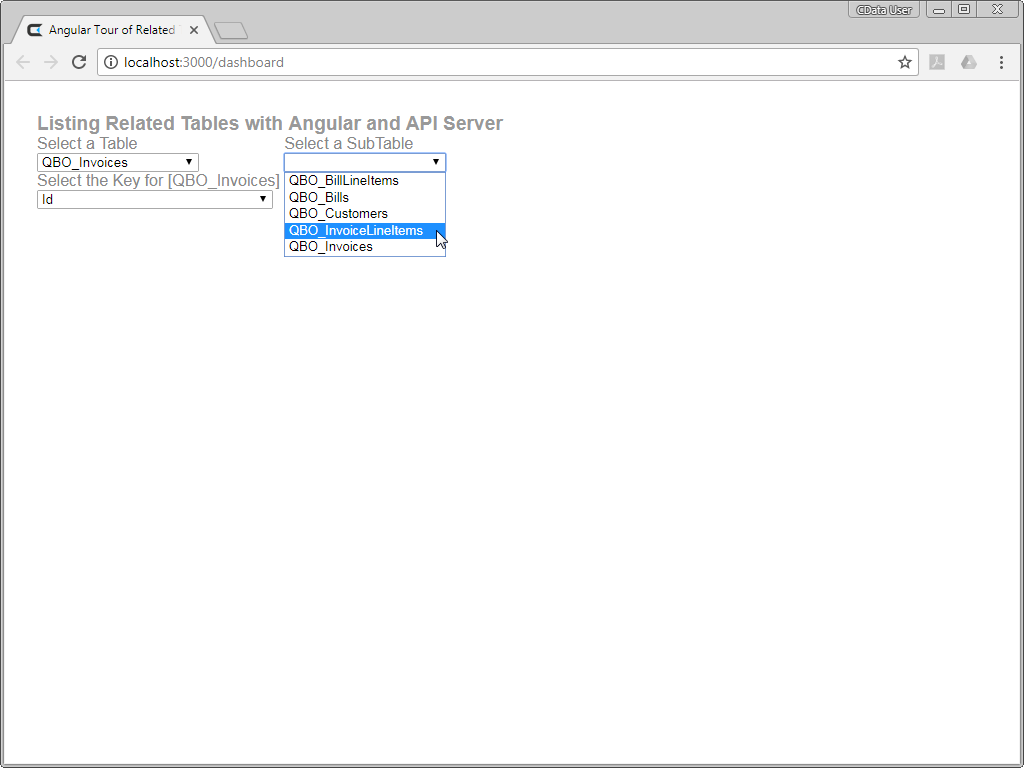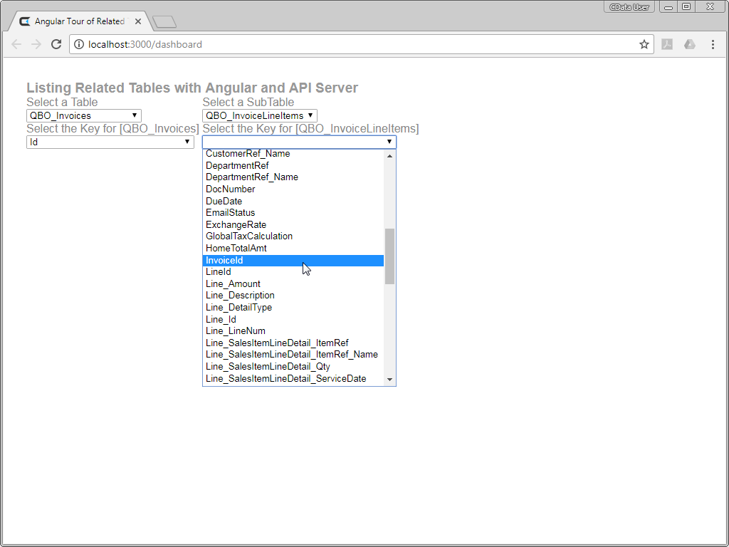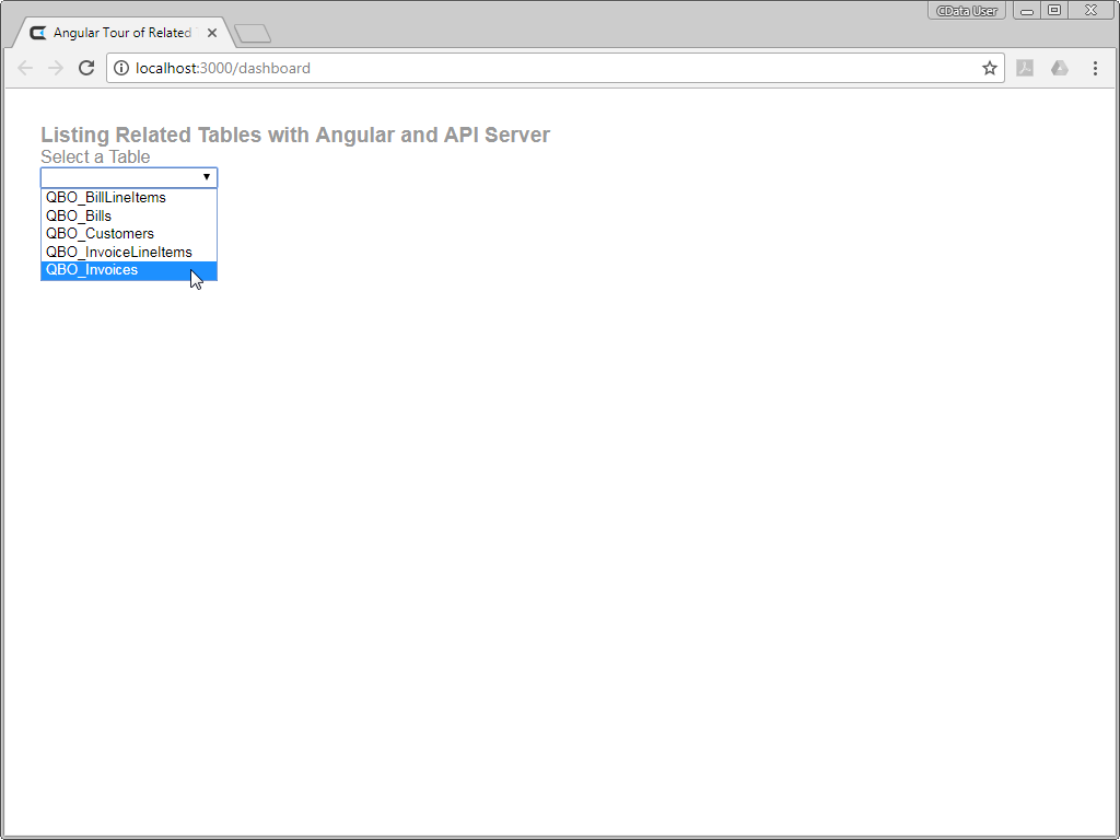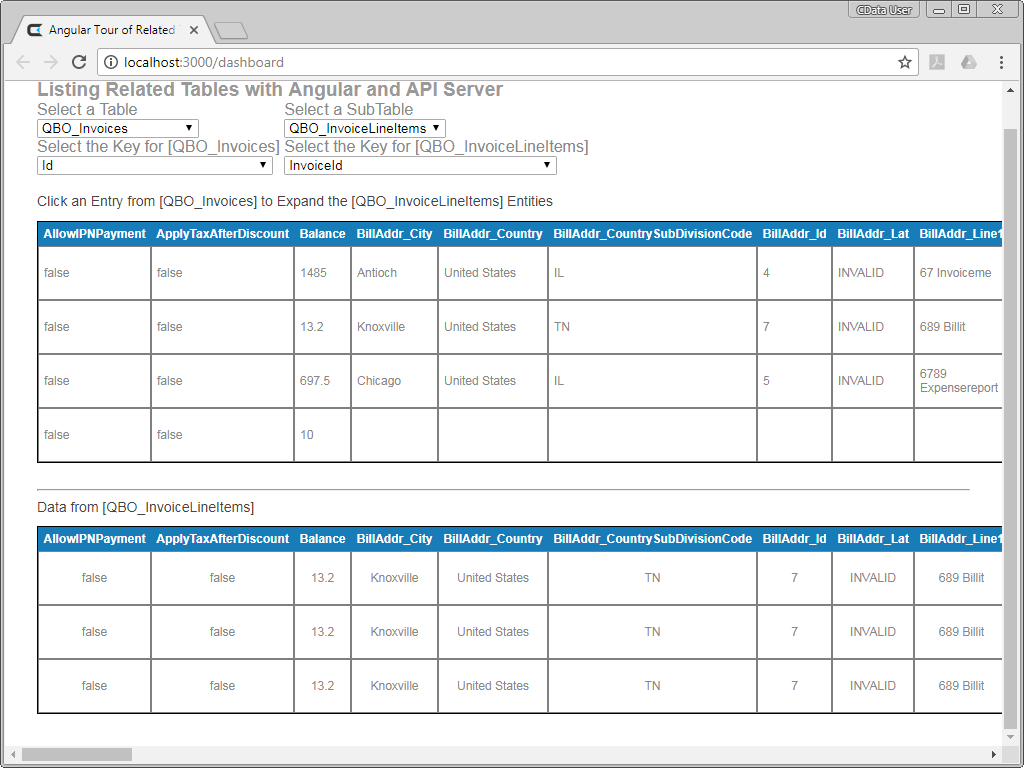 Angular は動的な Web アプリを構築するためのフレームワークで、Angular JS の原則を基盤として拡張されています。CData API Server を使用すると、オンプレミスやクラウドベースのデータベースを含む80以上のデータソースに対して REST API を生成できます。この記事では、CData API Server をセットアップして QuickBooks Online データ用の OData ベースの REST API を作成し、QuickBooks Online データにライブアクセスできるシンプルなシングルページアプリケーション(SPA)を構築する手順を説明します。この SPA では、関連する QuickBooks Online テーブル(請求書と請求書明細行など)に基づいて HTML テーブルを動的に構築・表示します。この記事ではコードの大部分を解説していますが、サンプル Angular プロジェクトをダウンロードして、完全なソースコードの確認や機能のテストを行うことができます。