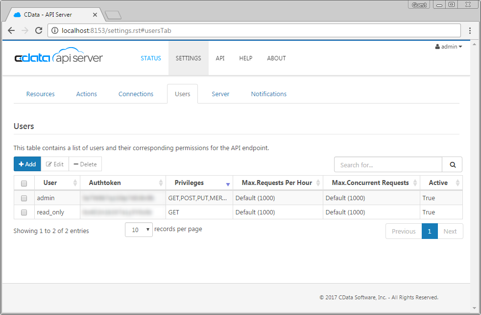 スクリーンショットでわかるように、読み書きアクセス権を持つユーザーはすでに設定されています。この記事では、読み取り専用ユーザーと、関連する authtoken を使用して API Server にアクセスします。