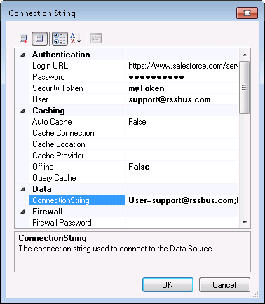 - Connection String プロパティのボタンをクリックします。Connection String Options ダイアログが表示されます。