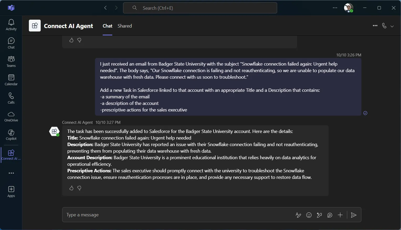 Microsoft Copilot Studio と Microsoft Teams で Connect AI 経由のデータ対話を実現