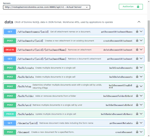 HCL Domino REST API は OpenAPI 準拠で開発されており、そのドキュメントは公開されています。詳細は以下の画面からアクセスできます。
