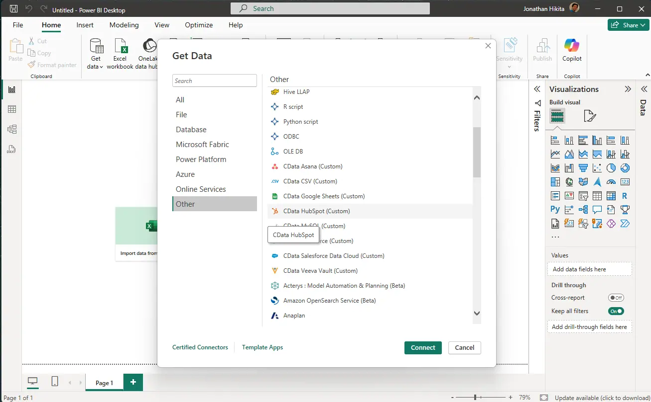 CData Drivers for HubSpot の代表的なユースケースとして、Power BI での HubSpot データ分析があります。ここでは、Power BI を例に CData Driver for HubSpot の使い方をステップバイステップでご紹介します。ETL ツールや中間データベース、コーディング作業なしで、Power BI Desktop から直接 HubSpot データに接続できます。