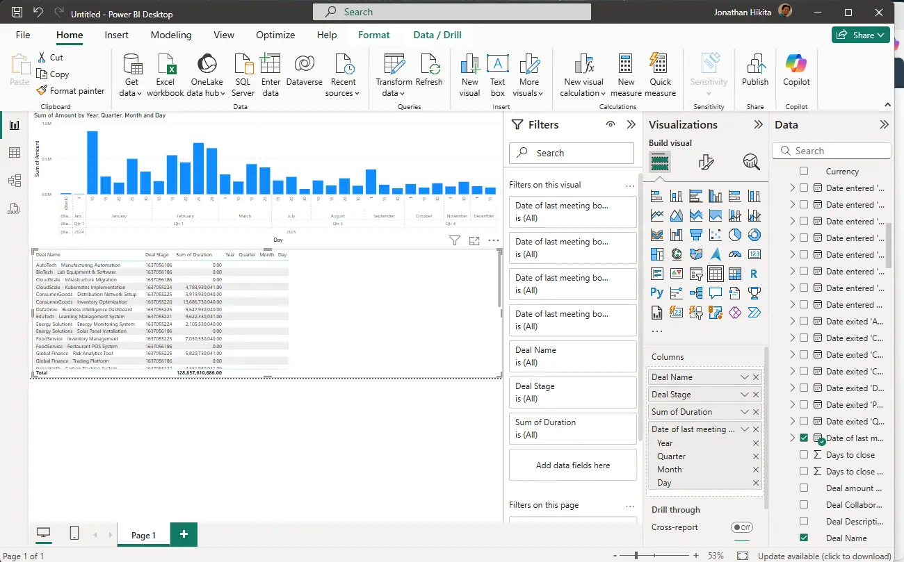 - これで HubSpot データが Power BI で利用可能になりました。