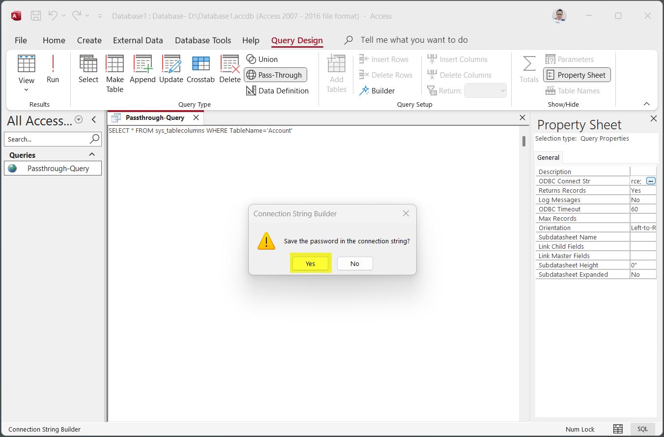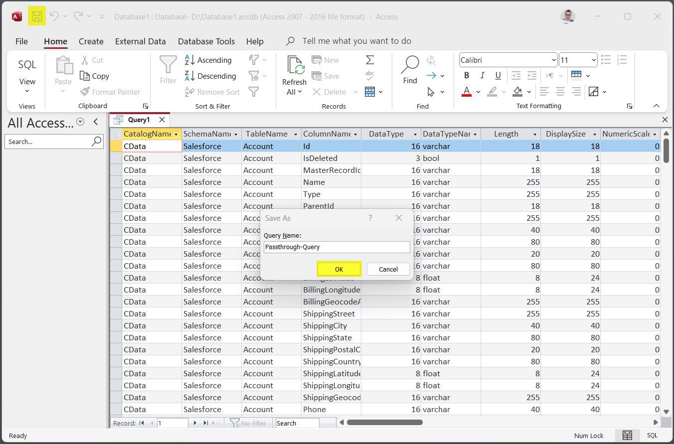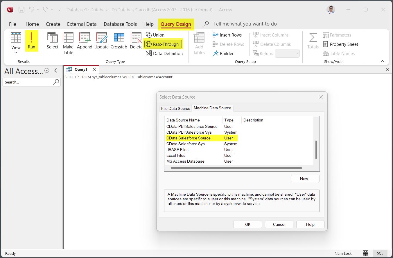 CData を使用して MS Access で SQL パススルークエリを作成する方法