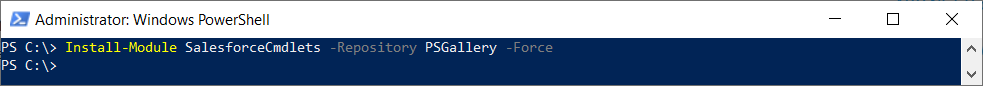 Install-Module SalesforceCmdlets -Repository PSGallery -Force