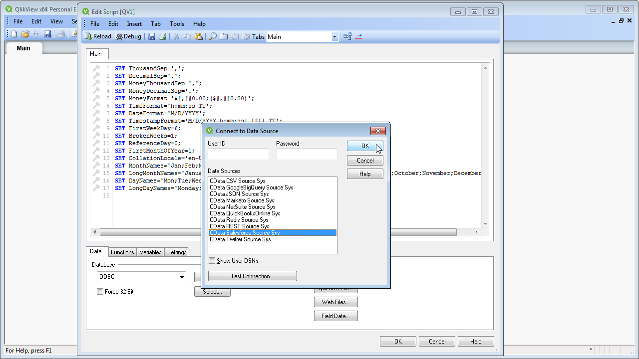 QlikView でSalesforce データに接続してビジュアライゼーションを作成(ODBC)