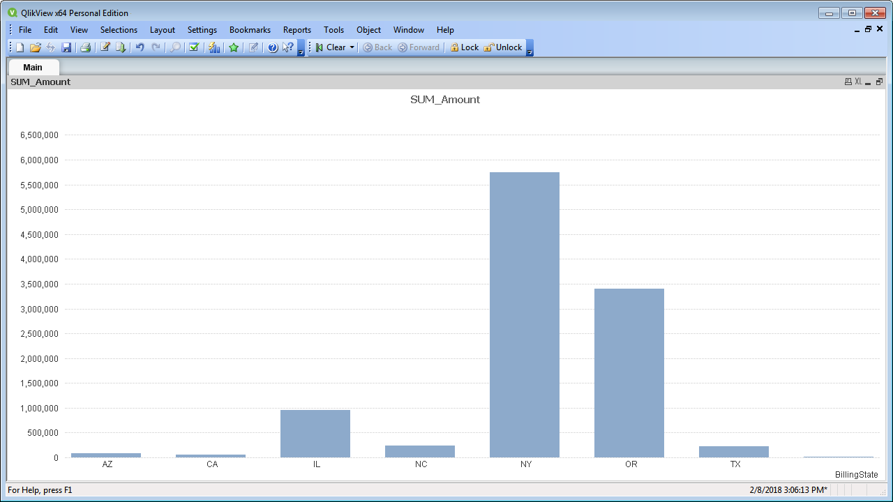 以下の手順では、SQL クエリの結果をQlikView のビジュアライゼーションに供給します。 この記事では、次のクエリを使って棒グラフを作成します: