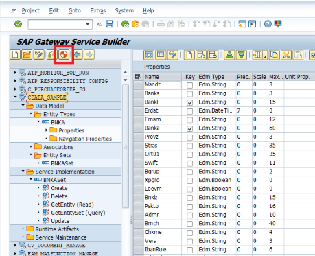 次に、インターフェース実装に関連する ABAP クラスとランタイムオブジェクトを生成します。プロジェクトを保存し、ランタイムオブジェクト生成ボタンをクリックします。