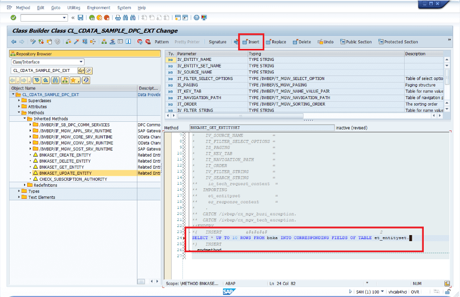 簡略化のため、BNKA テーブルから上位 10 行を選択して「et_entityset」に渡すロジックを実装しました。「Insert」ボタンをクリックし、以下の行を追加します: