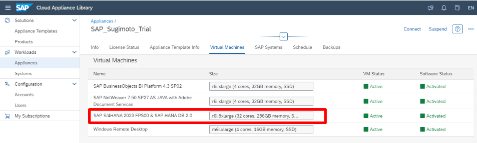 外部から接続する場合、使用するパブリック IP アドレスは「SAP S/4HANA 2023 FPS00 & SAP HANA DB 2.0」マシンのもので、ポート番号は 50000 です。