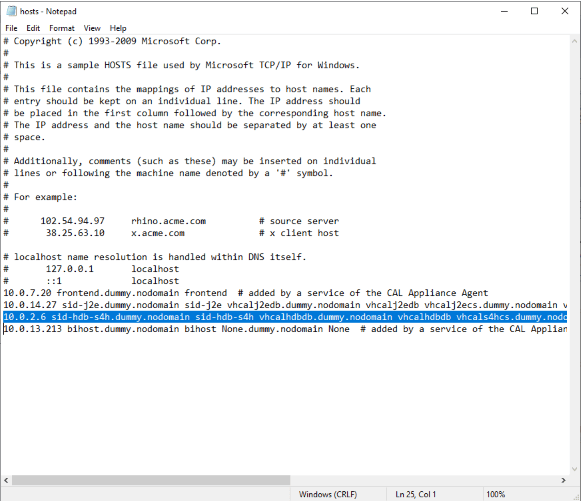 SAP Gateway Client は、hosts ファイルで指定された DNS を使用して接続します。