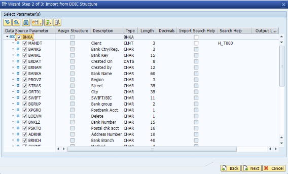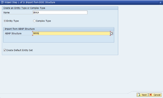 名前を指定し、ABAP Structure として BNKA を選択します。