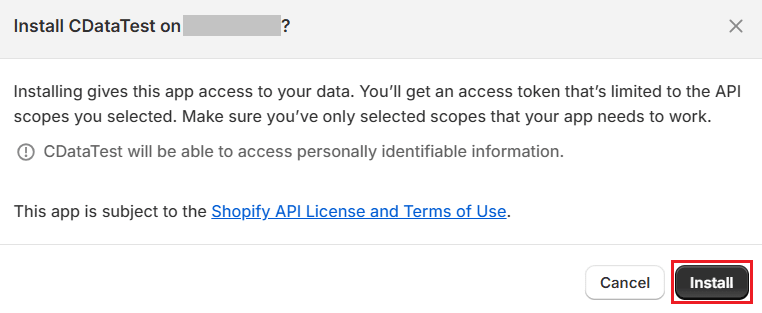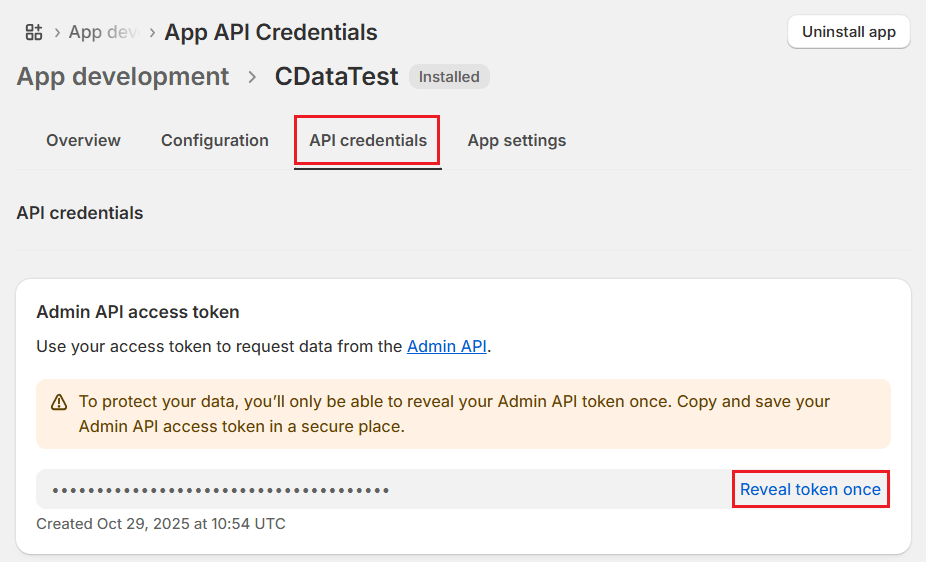 新しく作成した Shopify アプリから Admin API アクセストークンを取得できたので、CData Shopify JDBC ドライバーを使用して Shopify に接続できます。