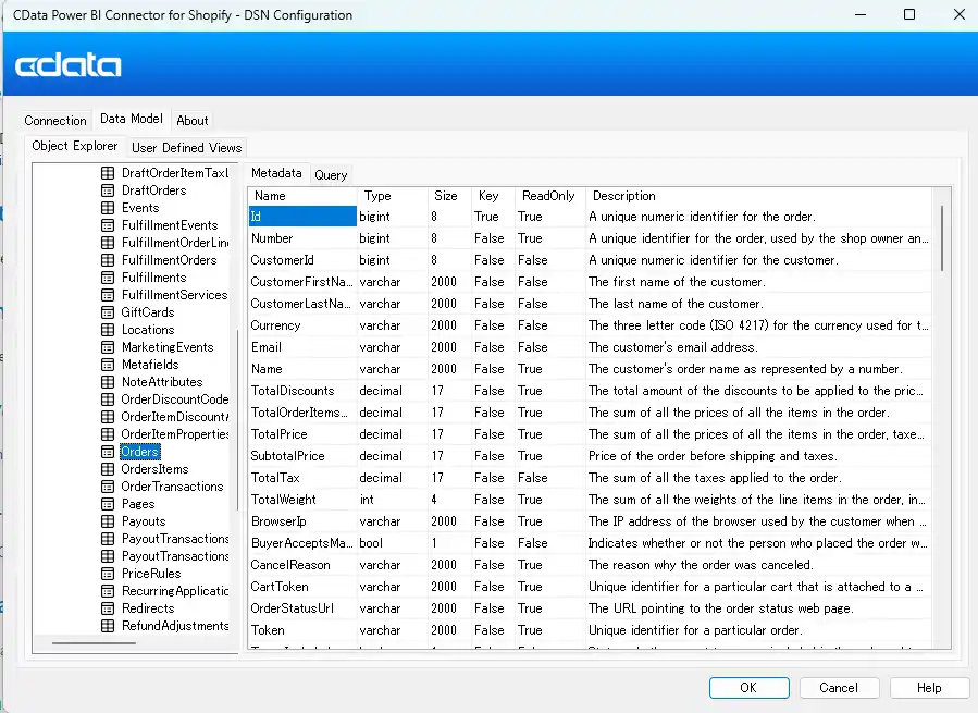 REST Admin API のレガシーステータス発表を受けて、ドライバーのデフォルト API は GraphQL に変更されました。通常、GraphQL Admin API を使用する場合は、GraphQL の仕様、データ構造、データアクセス時の API クエリコストを意識する必要があります。しかし、CData Shopify ドライバーを使用すれば、Tableau や Power BI などを利用する BI ユーザーにとって扱いやすい表形式のデータモデルに自動変換されます。REST API と GraphQL の違いを意識する必要はありません。