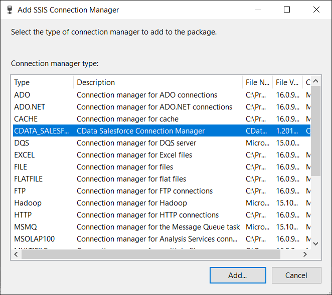 この記事では Salesforce SSIS Component を例に説明していますが、ここで紹介する手順は CData がサポートする250以上のデータソースすべてに適用できます。