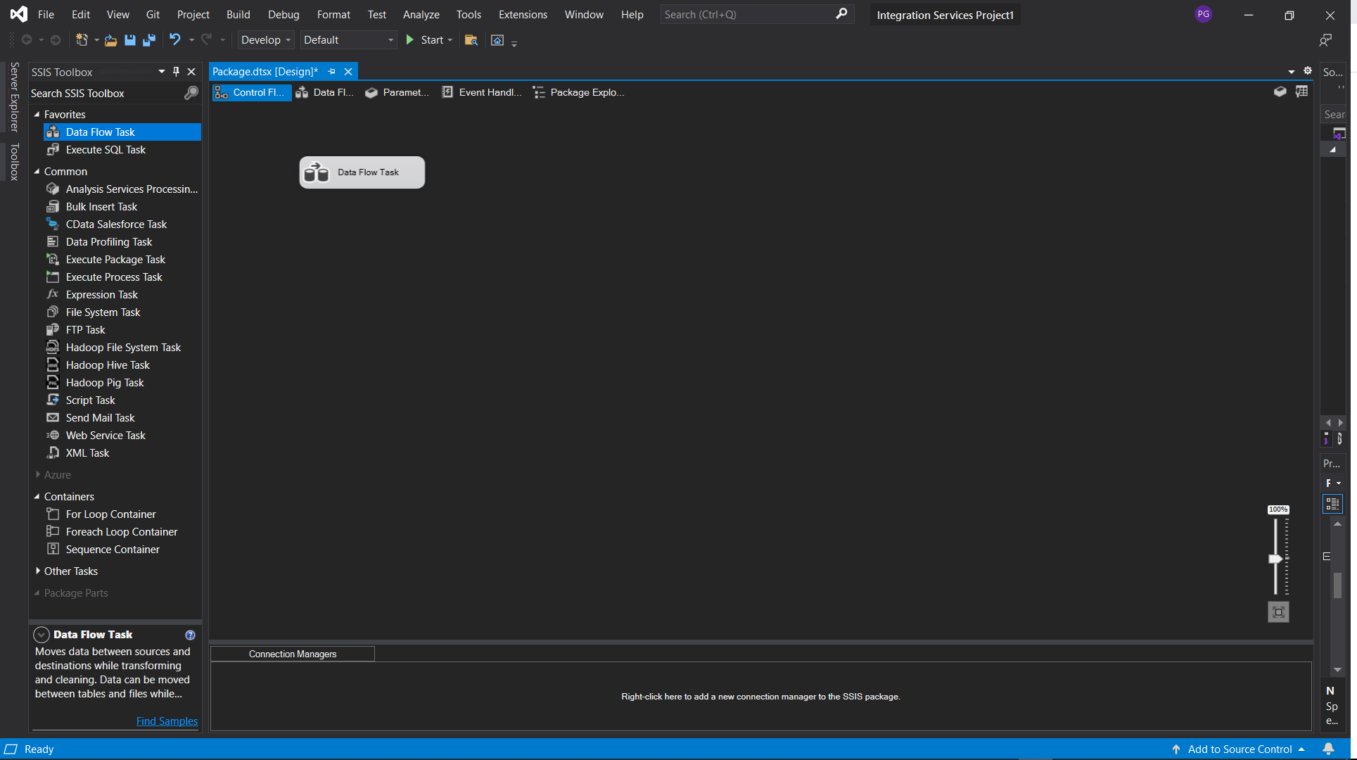 次に、パッケージに新しいデータフロータスクをドロップします。