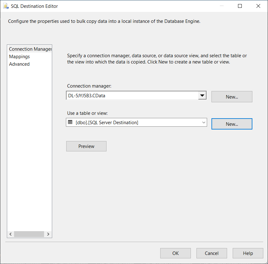 コンポーネントをダブルクリックし、先ほど作成した Connection Manager を選択します。次に、レプリケートするテーブルまたはビューを選択します。