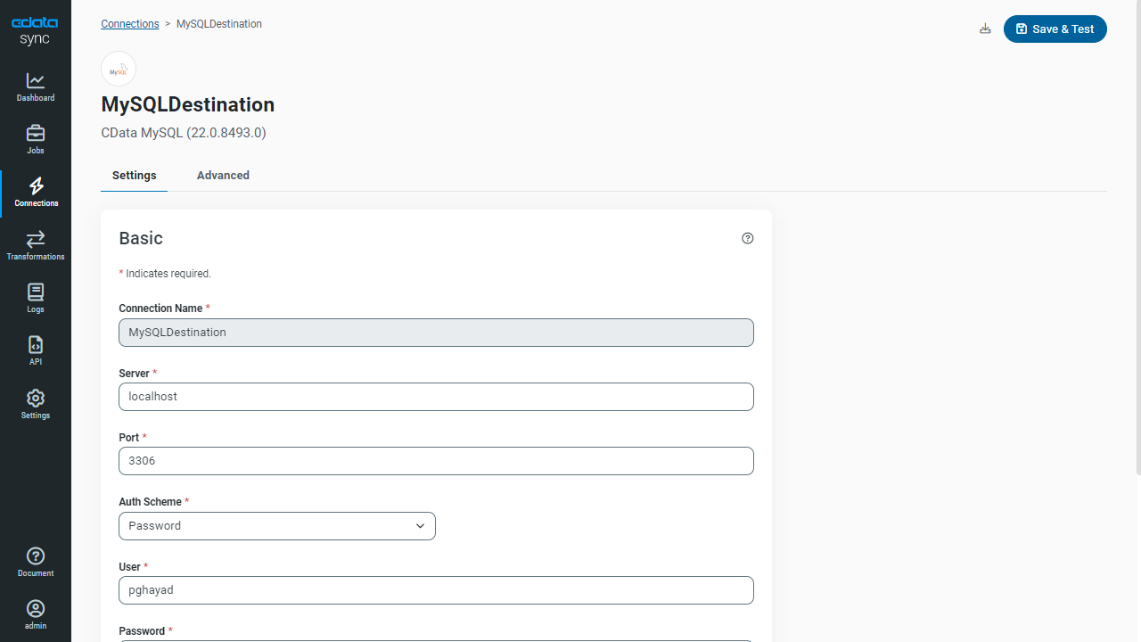 - 「Save and Test」をクリックして、レプリケーション先接続を保存します。